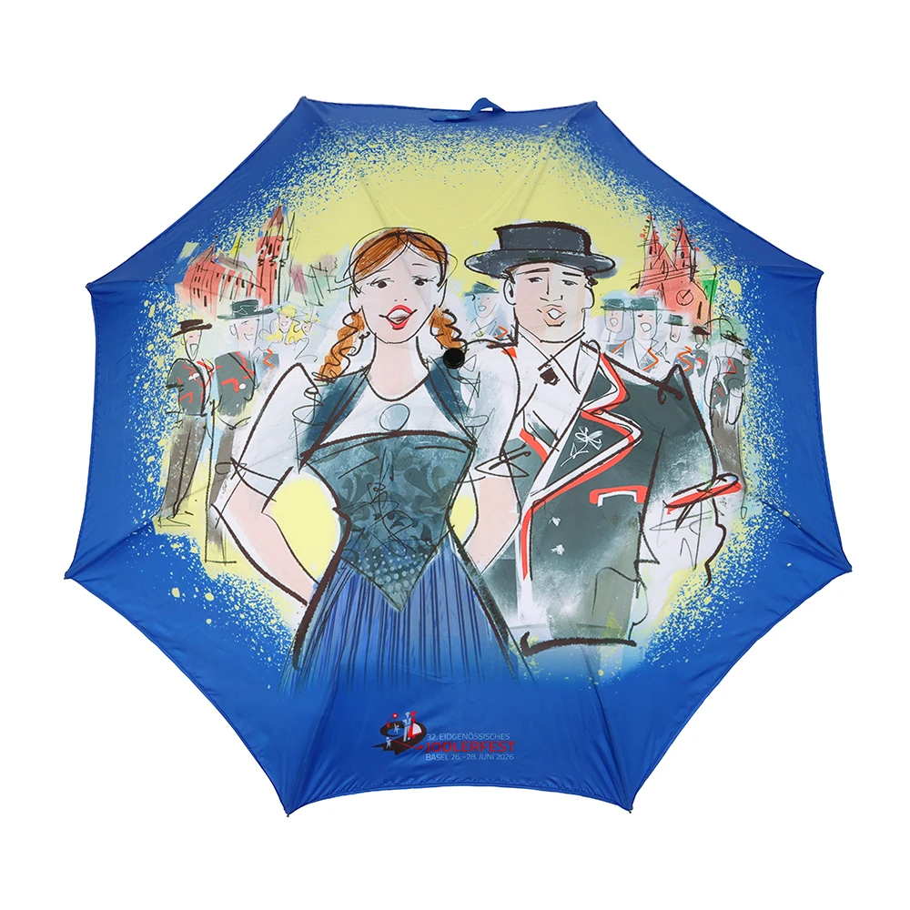 Dieser elegante Schirm mit vollflächigem Digitaldruck schützt zuverlässig vor Wind und Regen und lässt das exklusive Design des Jodlerfest 2026 eindrucksvoll wirken. Mit seinem angenehmen Handling und der stabilen Verarbeitung sorgt er dafür, dass du bei jedem Festabenteuer trocken bleibst.